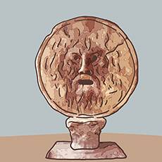 산타 마리아 인 코스메딘 성당 입구에 있는 진실의 입은 강의 신인 홀로비오 얼굴을 조각한 것이다.
