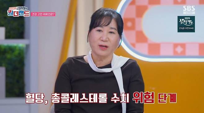 이날 건강 의뢰인으로 출연한 65세 원혜랑 씨는 "혈당과 고지혈증 수치가 위험 단계인데다 간 수치까지 치솟아 걱정이 돼서 나오게 됐다"라고 밝혔다.