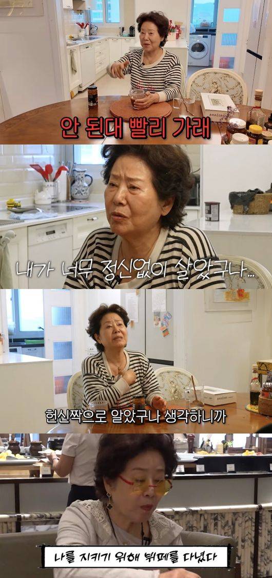 또 “여태까지 나 힘들다고 생각하지 않았지만 8남매의 맏며느리로서 최선을 다하고 우리 남편이 1,750만 원 괜히 어음 갚아준다고 땅 해서 했는데도 안되니까 ‘내가 돈을 벌어야 된다’ 우리 남편 돌아가실 때까지 난 친구가 없었다. 동창들 만난 적도 없고 방송인들하고만 왔다갔다 하고 집. 이것 밖에 몰랐다. 근데 정신이 번쩍 나더라”라고 눈시울을 붉혔다.