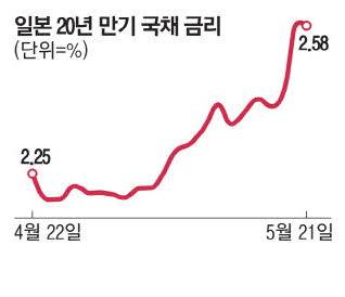 일본 장기 국채금리가 사상 최고로 치솟고 있다.