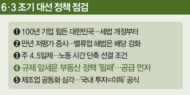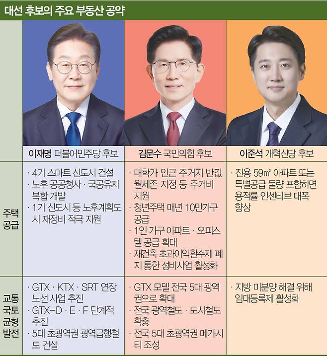 방식과 주체, 대상에서 조금씩 차이는 있지만 여야 주요 후보들이 일제히 주택 공급 확대, 집값 안정 등을 핵심 기조로 내세우고, 전문가들 역시 큰 틀에서는 공감하는 분위기다. 다만 공약 실현을 위한 구체적인 방안에 초점을 둬야 한다고 입을 모은다.
