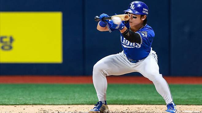 ▲ 희생 번트 2번과 3루타 1개로 승리에 앞장선 삼성 김성윤