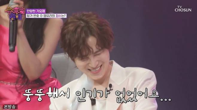 염유리의 무대가 끝나고 붐은 김희재의 학창 시절 인기를 궁금해했다. 김희재는 "말해서 뭐 합니까"라고 말하다 "솔직히 말하면 뚱뚱해서 인기가 없었다"라고 고백하며 고개를 숙였다.