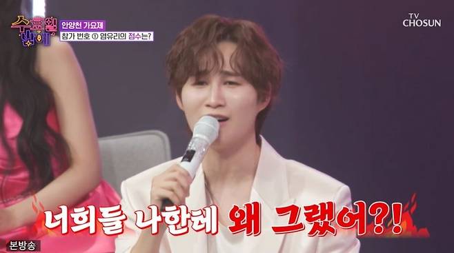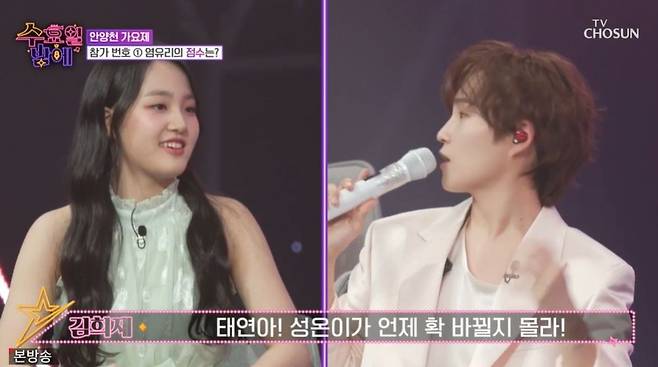 이날 안양천 가요제가 열렸다. 첫 번째 참가자는 염유리로, MC 붐은 염유리 의상을 보고 "중식당 알바하다 바로 온 거냐"라고 말했다. 염유리는 진미령의 '미운 사랑'을 선곡, "첫사랑은 이루어지지 않지 않냐. 가사가 그때 저의 마음을 대변해 주는 것 같아서 준비했다"라고 밝혔다. 붐은 "이 노래는 저도 사연이 있다. 이 노래를 제가 부를 때 김태연 양이 오열했던 영상이 있다"라고 했다. 그러자 김태연은 엑스표를 그려 웃음을 안겼다.