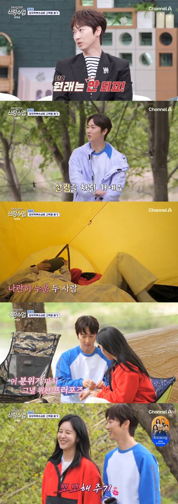 장우혁♥손성윤, 좁은 텐트에 나란히 누워…"살림을 차릴 것" (신랑수업)[종합]