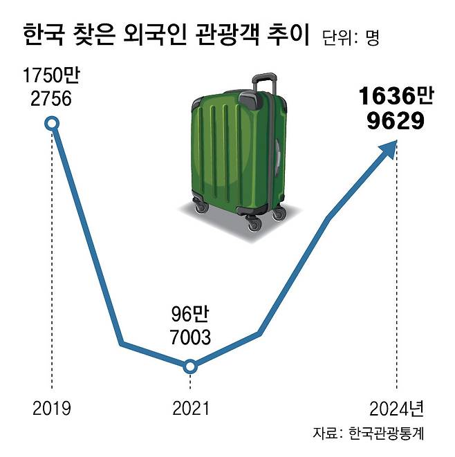 호텔 시장이 살아난 건 팬데믹 당시 급감했던 외국인 관광객이 다시 늘어난 영향이 크다. 한국관광통계에 따르면 지난해 한국을 찾은 외국인 관광객은 총 1636만9629명으로, 팬데믹 직전인 2019년(1750만2756명)의 93.5%까지 회복됐다.
