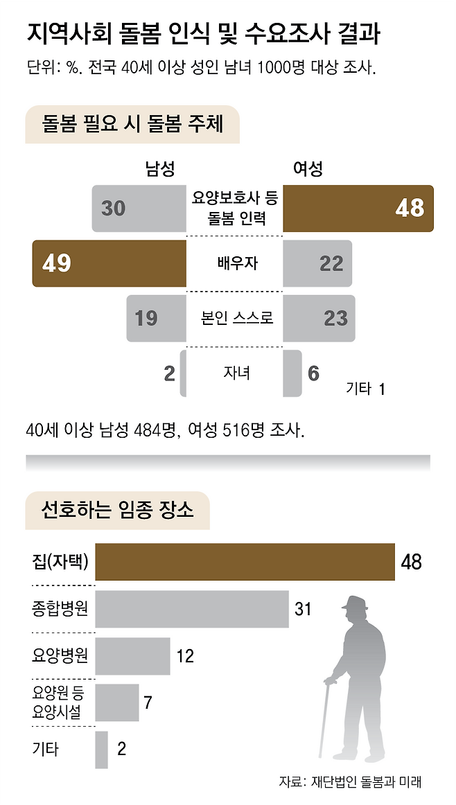 늙고 병들면 누가 돌봐줄까… 男 “아내” 49%, 女 “요양보호사” 48%