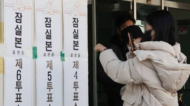 투표소 입구에 설치된 표지판이나 포토존을 배경으로 촬영하는 사진도 가능합니다.