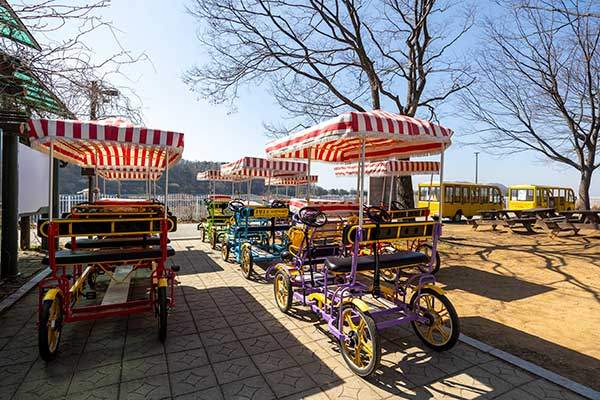 - 마을기업에서 매점과 자전거대여소를 운영(09:00~17:30)한다. 컵라면(2,000원)을 비롯해 과자와 음료 등을 판다. 2인용 자전거 30분 5,000원. 6인용 30분 2만 원, 1인용 30분 3,000원.