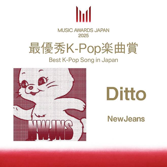 뉴진스(민지, 하니, 다니엘, 해린, 혜인)의 싱글 앨범 ‘OMG’의 수록곡 ‘디토(Ditto)’는 지난 21일 일본 교토에서 열린 ‘뮤직 어워드 재팬 2025(MUSIC AWARDS JAPAN 2025)’에서 ‘베스트 K-팝 송 인 재팬(Best K-Pop Song in Japan)’ 부문을 수상했다.
