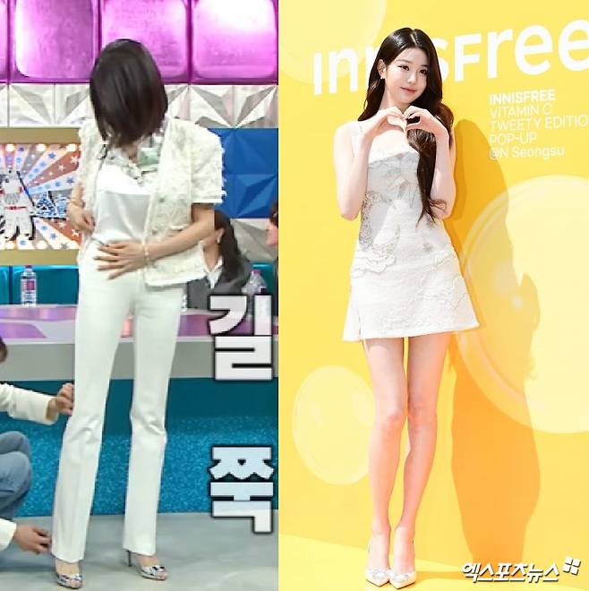 골반을 기준으로 촬영 도중 직접 잰 백지연의 다리길이는 109cm였다. 특히 아이돌 대표 장신인 아이브 멤버 장원영은 173cm의 키에 다리길이 107cm로 화제된 적 있기에 백지연의 다리길이 또한 함께 눈길을 끈다.
