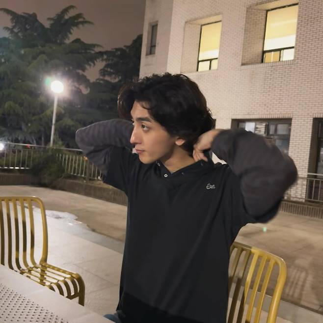해당 사진에서는 흰 티에 청바지를 매치했다. 흔한 코디지만 핏으로 분위기를 냈다. 레귤러 핏의 티셔츠와 스트레이트한 진청바지로 복고풍 밴드맨 이미지를 연출했다.
