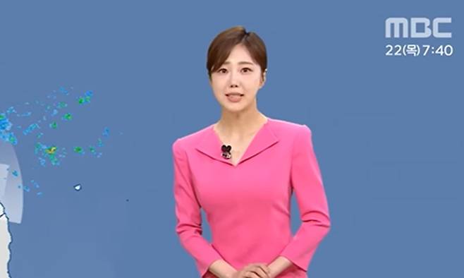 이러한 가운데, 22일 '뉴스투데이'에는 김가영 기상캐스터가 날씨를 전하기 위해 출연했다.