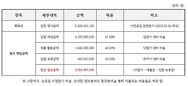 • 감정가 약 50억원 → 최저입찰가 약 40억원으로, 실투자금 대비 가치가 우수합니다.