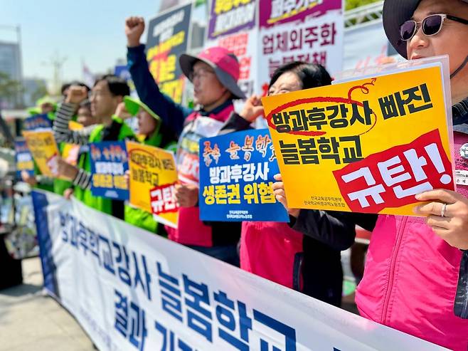 | ▲ 방과후강사 빠진 늘봄학교 규탄한다! 지난 4월 28일 방과후학교강사들은 늘봄학교 실태조사 결과를 발표했다. |