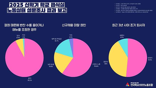 | ▲ 급식실에 결원이 생겨도 메뉴는 조정되지 않는다. 2025 신학기 학교 급식실 노동실태 설문조사 결과 |
