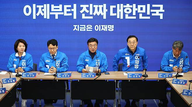 ▲ 더불어민주당 윤호중 중앙선대위 총괄본부장이 22일 서울 여의도 당사에서 열린 제6차 총괄본부장단회의에서 발언하고 있다.