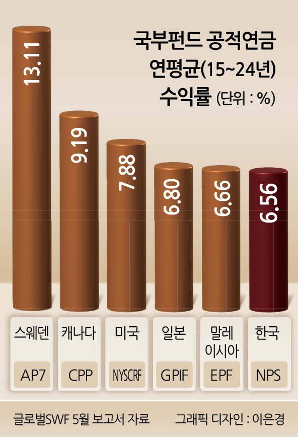 물론 국가별 연기금 수익률을 비교할 때 환율 영향을 고려해야 한다. 하지만 10년 이상 누적된 장기 수익률이라는 점에서 일시적인 환율 효과보다는 자산배분 전략과 운용 구조 등 근본적인 차이가 더 큰 영향을 미쳤다는 분석이 나온다.