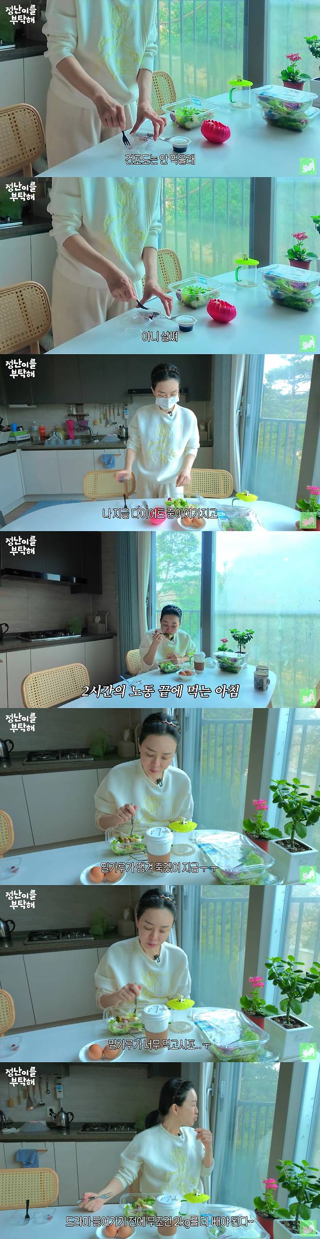 그는 샐러드를 먹으며 "지금 밀가루가 땡겨 죽겠다. 밀가루가 너무 먹고싶다. 풀때기 이게 뭐냐"며 다이어트 고충을 털어놨다.