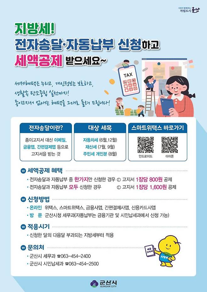 군산시, 지방세 전자송달·자동납부하면 세액 공제합니다