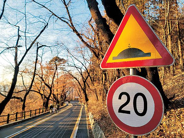 익숙한 과속방지턱 표지판이 어딘가 다르게 느껴졌기 때문입니다.