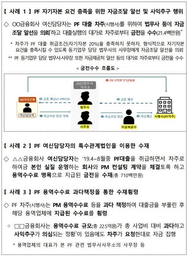 또 현장 검사 등을 통해 PF 대출 취급 과정상의 미비점이 확인될 경우 즉시 보완하도록 하고, 그 내용을 업권에 공유함으로써 건전성 관리와 여신 심사 수준이 전반적으로 상향되도록 할 방침입니다.