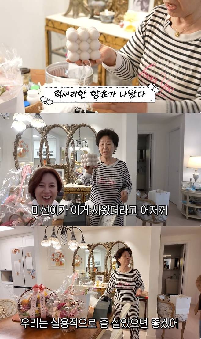 공개된 영상에서 선우용여는 "이게 그렇게 좋은 거라더라"며 박미선이 선물한 럭셔리 향초를 자랑했다. 선우용여는 "미선이가 어저께 이걸 사 놨다. 우리 아빠 앞에다 놓아야지"라며 아버지 사진 앞에 향초를 두었다.
