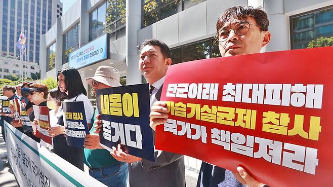 ▲ 가습기살균제피해자 및 인권시민단체 관계자들이 지난해 8월 30일 서대문구 경찰청 앞에서 '가습기살균제 국가범죄 진상규명과 피해회복을 위한 형사고발 기자회견'을 하고 있다.