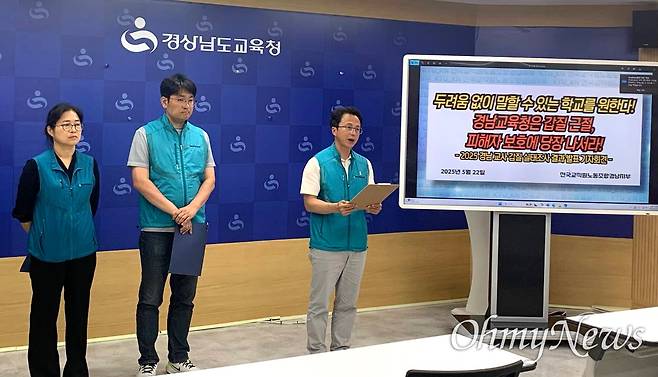 또 이들은 "교육청은 학교를 지도 감독할 책무가 있다. 경남교육청은 학교 관리자의 비민주적 의사결정을 더 이상 좌시하지 말고 갑질을 근절하기 위한 강력한 감독 체계를 구축하라"라고 했다.