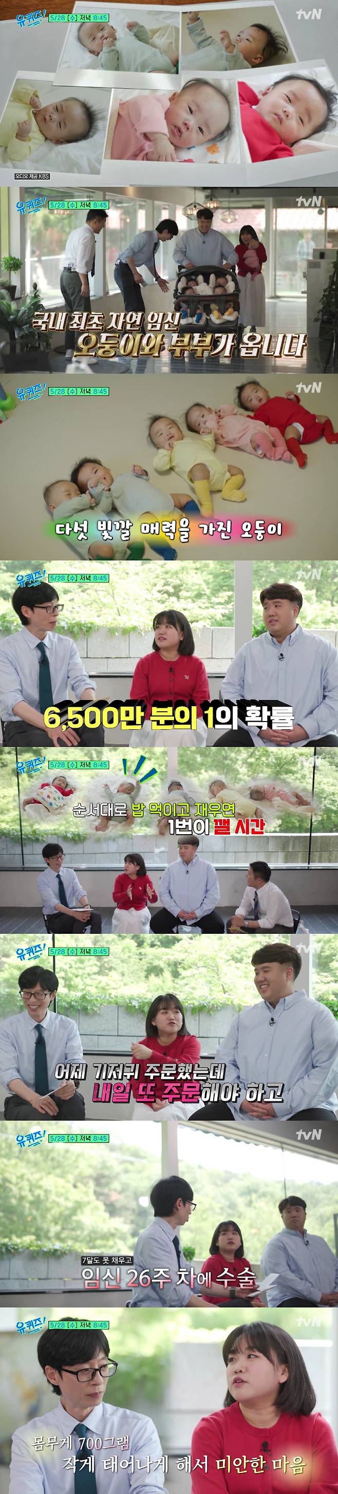 "작게 태어나게 해 미안"..국내 최초 자연임신 다섯쌍둥이 부부, '유퀴즈' 뜬다