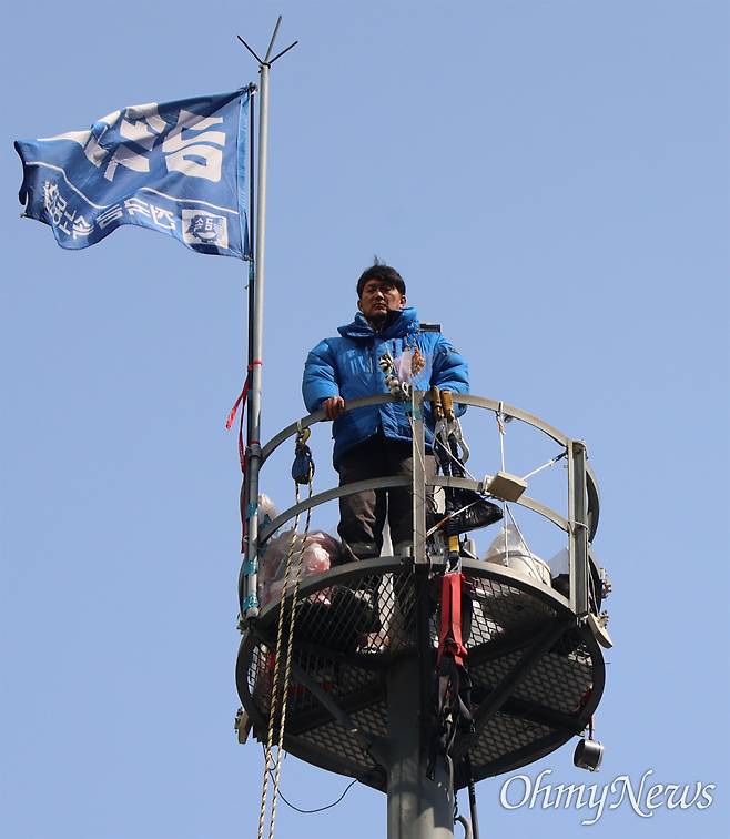 김형수 조선하청지회 지회장, 22일 현재 69일째 고공농성 ... 노사 양측, 교섭재개