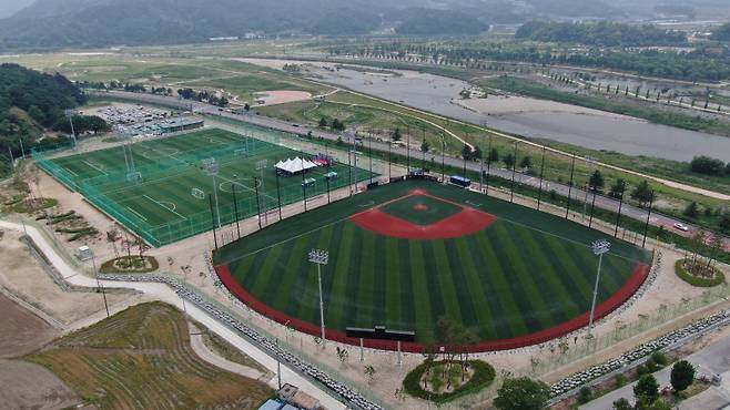 거창군은 제2스포츠타운과 제2창포원 파크골프장 조성을 위해 부지면적 11만3427㎡에 총사업비 175억원을 투입해 야구장 1면, 축구장 1면, 그라운드골프장 1면, 파크골프장 36홀과 함께 관리동, 주차장 241면 등 부대 시설을 조성했다.