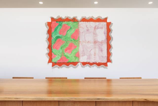 전시장에서는 틀 없이 바닥에 펼쳐지거나 벽에 걸린 천, 덩그러니 놓인 나무 프레임, 매듭지어진 밧줄 등 다양한 작품을 만나볼 수 있다. 편지봉투와 신문지, 유리창 틀, 도장, 폐유(廢油), 철조망, 타일, 지푸라기 등 일상 속의 오브제를 재료로 활용한 작품들도 눈에 띈다.