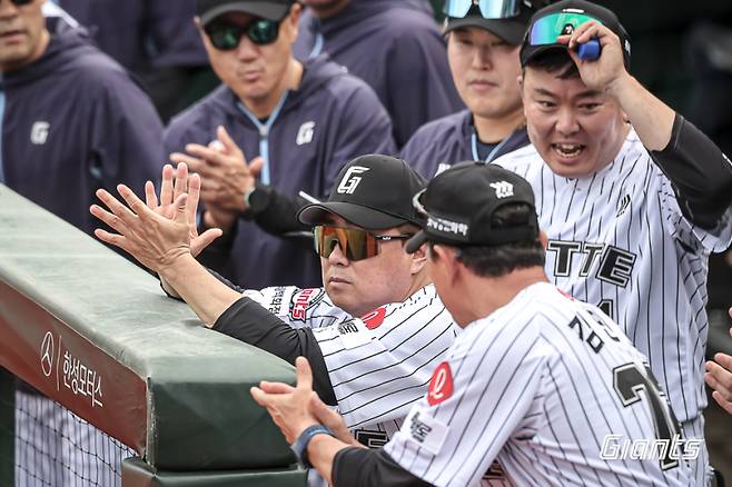 롯데는 송재영과 김상수가 차례로 나서 8회 초 수비를 실점 없이 막고, 고승민이 동점포를 친 뒤에는 바로 마무리 투수 김원중을 붙여 역시 추가 실점 없이 정규이닝을 마쳤다.