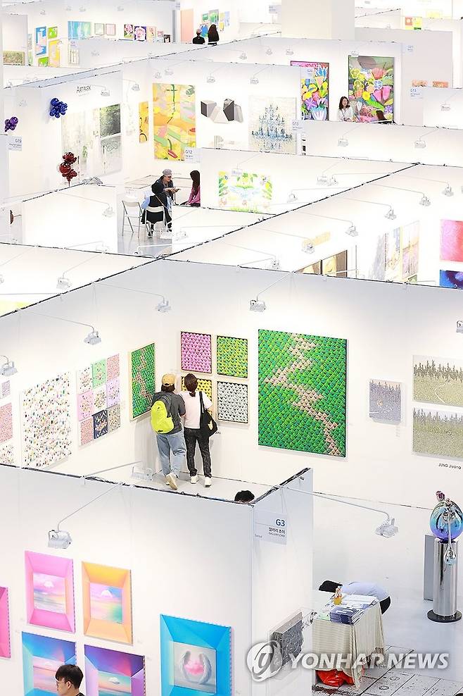 (서울=연합뉴스) 진연수 기자 = 22일 서울 강남구 코엑스에서 열린 '조형아트서울 2025'를 찾은 관람객들이 전시 작품을 둘러보고 있다. 2025.5.22