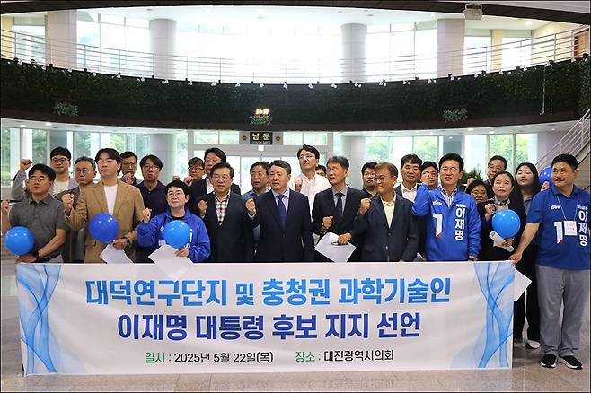 대덕연구단지와 충청지역 과학기술인 1192명이 이재명 대선 후보 지지를 선언했다. 이들은 22일 대전시의회 로비에서 기자회견을 열어 과학기술계를 이권 카르텔로 낙인 찍고, R&D 예산을 대폭 삭감한 윤석열 정부를 비판하면서 이같이 밝혔다.