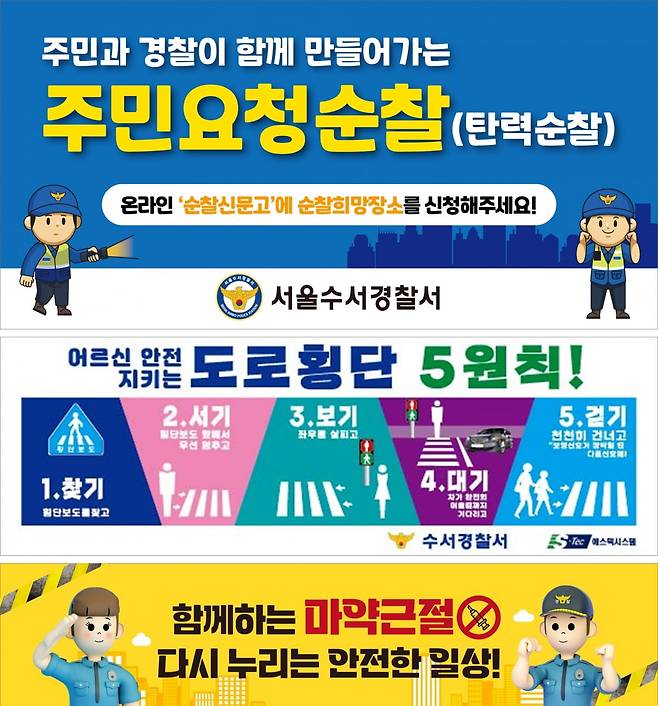 종합안심솔루션 전문 기업 에스텍시스템이 서울 수서경찰서 범죄예방대응과 및 교통과와 협업해 범죄예방 홍보 활동을 펼친다.