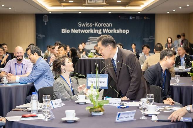 '한국-스위스 혁신주간'(5월 19일~23일)을 맞아 열린 이날 워크숍에 이재준 수원시장을 비롯해 알렉산드라 아피첼라 주한스위스대사관 과학기술협력실장, 한국과 스위스의 바이오·생명과학 분야 기업·대학·병원 관계자 등이 대거 참석했다.