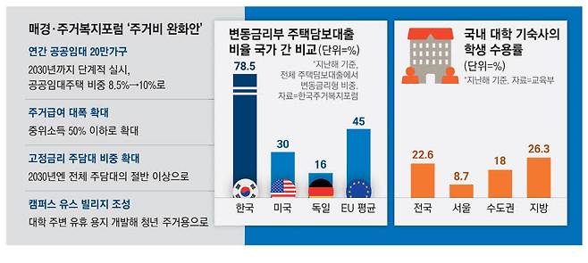 지방에서 올라온 대학생들의 주거비 부담도 높다. 이는 지방 출신 자녀를 둔 학부모의 주거비 부담 증가로 이어진다. 이를 극복할 대안이 바로 '캠퍼스 유스 빌리지' 구축이다. 포럼 측은 대학이 건축기금을 활용해 대학 주변의 유휴 용지나 역세권 땅을 사들인 뒤 복합 용도의 고층 건물을 세워 대학생용 기숙사를 확보할 수 있다고 주장한다. 복합 용도인 만큼 기숙사 외에 상업·업무시설과 일반 분양주택으로도 사용할 수 있다. 장용동 주거복지포럼 대표는 "대학 외에 지방자치단체의 유휴 시설이나 한국토지주택공사(LH)의 매입·전세임대 등을 통해서도 유스 빌리지 구축이 가능할 것"이라고 말했다.