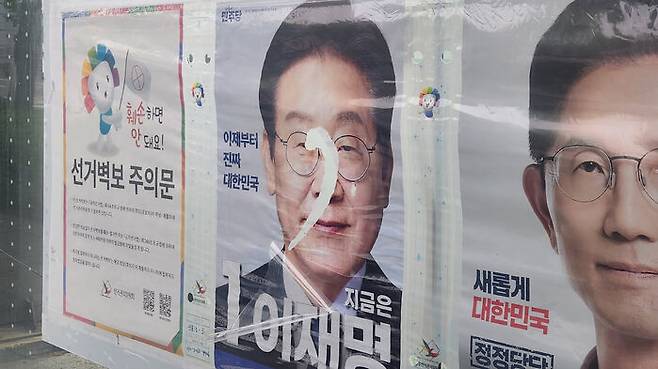 인천서 이재명 후보 벽보 훼손된 채 발견…용의자 추적