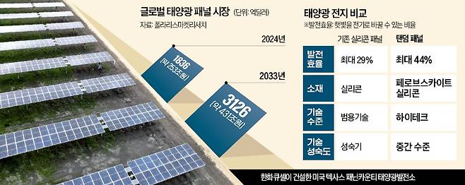 시장에선 2033년에는 세계 태양광 패널의 30% 정도가 탠덤 패널로 전환되고 2040년에는 모든 태양광 패널이 탠덤 패널이 될 것으로 보고 있다.