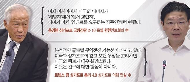 트럼프 2기 행정부 출범 이후, 싱가포르는 미국과의 관계에서 독특한 외교적 변화를 보이고 있다. 지난 2월, 싱가포르의 응엥헨 국방장관은 뮌헨안보회의에서 "이제 아시아에서 미국의 이미지는 '해방자'에서 '질서 교란자', 나아가 '임대료를 요구하는 집주인'으로 변했다"고 공개적으로 비판했다. 트럼프 행정부의 동맹 관리 방식이 비용과 보상 중심의 거래적 방식으로 전환되었음을 지적한 것이다.