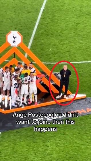 애초 포스테코글루 감독은 포디움에서 선수들과 멀찍이 떨어져 있었다. '내가 아닌 너희들의 시간'이라는 듯 연단 오른쪽 가장자리에서 홀로 서 있었다.