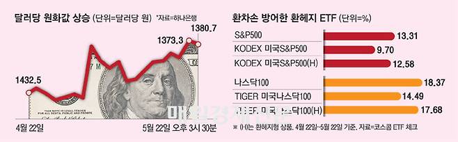 반면 환헤지형 ETF는 환율 손실을 방어해 기초지수와의 수익률 격차를 1%포인트 내외로 좁혔다.