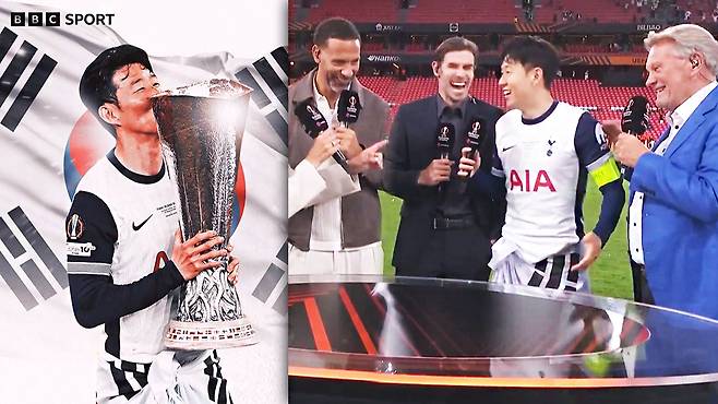 영국 언론 BBC도, 유럽축구 연맹도 대문에 손흥민의 우승 사진을 내걸었습니다.