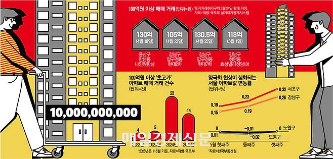 압구정 현대6·7차 전용 245㎡(8층)도 지난달 25일 130억5000만원에 거래되며 신고가를 경신했다. 이는 압구정 현대아파트는 물론 압구정 재건축지구 전체를 통틀어 역대 최고가다. 동일 평형의 직전 거래가는 작년 6월 신고된 115억원이다. 나인원한남 전용 273㎡(1층) 역시 지난 2월 250억원에 팔렸다. 이는 역대 공동주택 최고가 거래다.