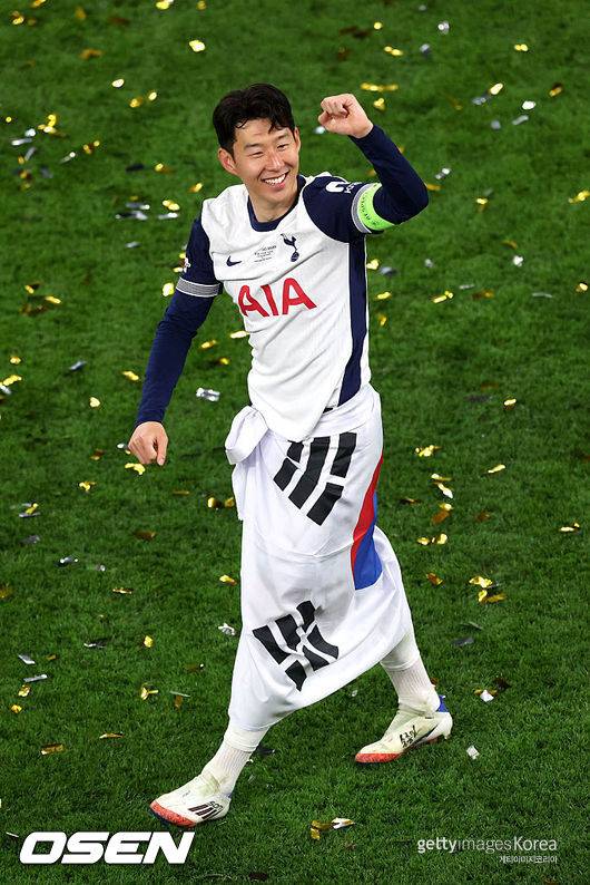 경기 종료 휘슬이 울린 후 손흥민은 태극기를 두르고 트로피를 높이 들어 올렸다. 그는 팀 동료들의 환호 속에 결승전 트로피를 정중앙에서 들어 올리며, 오랜 시간 기다려온 '캡틴 손'의 우승 장면을 완성했다.