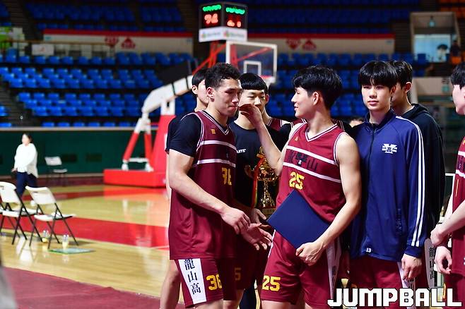그런데 경기가 끝난 뒤 용산고 선수들이 모인 곳에서 눈물바다가 벌어졌다. 패배를 당한 용산고 에이스 에디 다니엘(192cm,F.C)이 자책의 눈물을 쏟은 것.