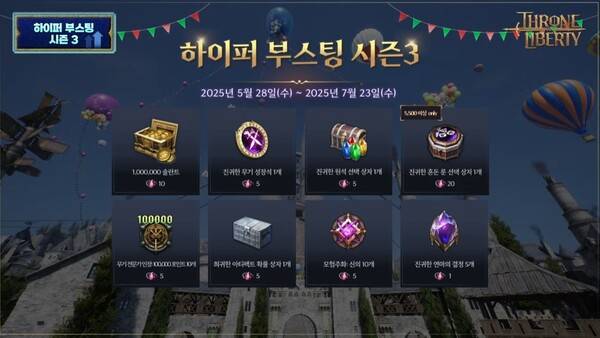 엔씨소프트 TL이 6월 대규모 레이드 업데이트에 앞서 5월 하이퍼 부스팅 시즌3을 시작한다.