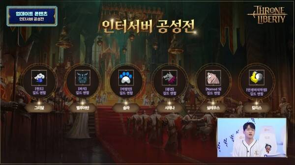 다음 주 업데이트된다. 그 주 주말에 각 서버 가장 강력한 길드 연합을 매칭해 공성전을 진행한다. 무승부 상황이 오더라도 처치나 점령 등 종합 요소를 취합해 승자를 결정한다.